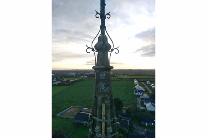 Le frettage de la flèche Nord, réalisé suite aux dégâts causés par la tempête Ciaran a bien-sûr été contrôlé, comme il doit l’être chaque année d’ici sa réparation.