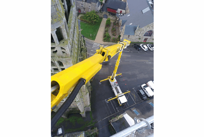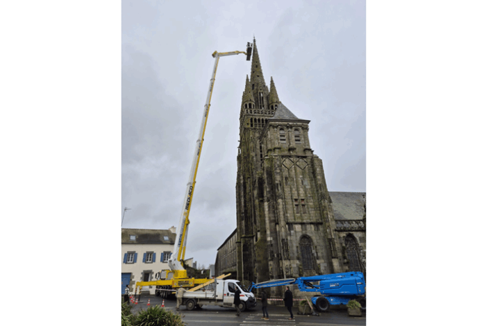 L’opération a consisté, à l’aide d’une nacelle, à vérifier, presque pierre par pierre, l’état de l’édifice.